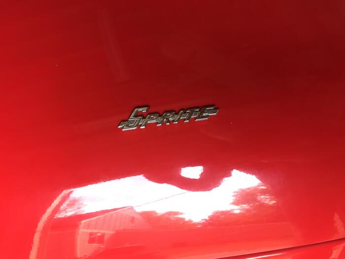 After the hard stuff was done I decided to put the soft top on to be sure I would be protected if I ever got caught in the rain. I had never had the top on since I bought the car in 1980. I tried every way I could but the top would not fit right. I discovered that the previous owner had sold it to me with the wrong top frame, it was a Bugeye frame. I was able with the help of eBay to sell the Bugeye frame and buy a correct Sprite frame. Now I can take the top along in the boot on long drives and be protected. But wait, now I cannot fit the top into the boot because of the new boot lid struts I installed and all of the space now taken up by my coil-over-shock suspension and the battery. I can't stash the top behind the seats either because of the roll bar. I'll figure something out before next Spring. I had time for one last drive of the season.