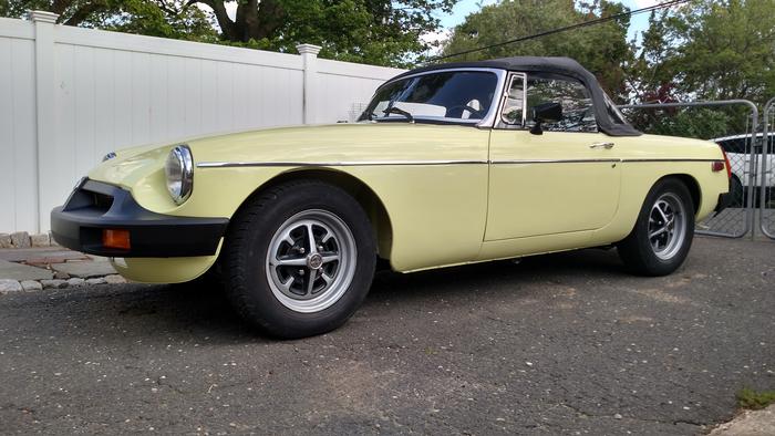 PRICE REDUCED!! I obtained this 77 B in exchange for doing some sales and marketing work for friend, restoration shop owner and fellow car guy. Once I got it home, I charged the 10 year old battery that came in it, poured 2 small funnels full of gas into the original ZS carb and believe it or not the thing actually ran! I was amazed! Thus began the restoration of "Old Yellow". The car had been off the road and stored indoors for several years but previous owner's bad repairs and the Tin Worms had already done their damage. A Virginia Inspection Sticker from 2004 shows how long it had been dormant. I pulled out the badly deteriorated carpet and interior, removed the engine and transmission and completed a thorough tear down to a rolling shell with a cleaned, de-greased and rattle can primed body. After trying several local paint and body guys without finding somebody who wanted to work with me on the project, I decided to send the car to, a restoration shop in Downingtown Pa., which is now out of business. Instead of patching the several small rust holes in the floors, we installed new "Heritage" floor panels on both sides and in the boot. Front Fenders are new aftermarket parts. The poorly done dog leg patches were redone properly and the body was mounted on a rotisserie for complete water born abrasive blasting down to bare metal. Three coats of epoxy primer were applied to all surfaces with a minimal amount of filler then the car was painted in single stage Valspar HS Polyurethane 840 Topcoat, in "Chartreuse" the original factory color. I have about a Pint of the paint which will be provided to the ultimate buyer. Factory Rostyle Wheels are also repainted. I got the car back home and began the process of reassembly.The engine that came in the car has been completely rebuilt and a mild cam has been added by my friends at GAuto. I installed a resealed 4 speed trans. Front and rear suspensions have been completely addressed with rebuilt King Pins, new bushings, lowering springs up front and lowering blocks in the rear, refinished and detailed cross-members, A-arms and sway bars, new Brake rotors and rebuilt calipers, resurfaced drums plus all new hoses, shoes and hardware. Additional work includes installation of a pair of recovered, 70-72 black vinyl seats, new door panels, dash cover and new black carpeting. A NOS Amco Top with rear Zipper was found on eBay which I had a local pro install. I've also gone ahead and touched up the paint and finished the assembly of "Old Yellow". I've been driving this car since Spring of 2016 and have now put just over 1000 miles on it. Additional updates include installation of a polished Tourist Trophy Stainless Exhaust, a brand new pair of SU HS4 Carbs with Moss Cold Air Intake, K&N Filter and a factory pre-1975 exhaust manifold, new SU Fuel Pump and a new powder coated fuel tank with new sending unit. I completely refinished the "Rubber Bumpers", as I have done on several other pairs, including dismantling of the inner steel structure, rust removal of all parts and reassembly with all new rivets. I am confident in the cars performance and have decided that now is the time to let it go to a new owner. So if you are looking for a reliable, affordable classic car that will bring compliments whenever driven come see and drive this car while you can. Asking $9999. The car is stored at my garage in Leonardo, NJ 07737. I have hundreds of photos of the restoration and all receipts for parts and services will be shown to interested parties. Please feel free to call, 732-778-3274 with any questions, to request detailed photos and make an appointment to see this great 1977 MGB while you can. Thanks for reading about my car and good luck in finding a nicer Late MGB. Bill Miller Car Finder LLC. Since this affliction has taken hold of me I am also willing to consider partial trades for this car. Do you have a Chrome Bumper MGB Roadster or GT in need of work that you realize you will never have time or skills to address? Call me to discuss your project and mine, maybe we can come to a mutually beneficial deal!